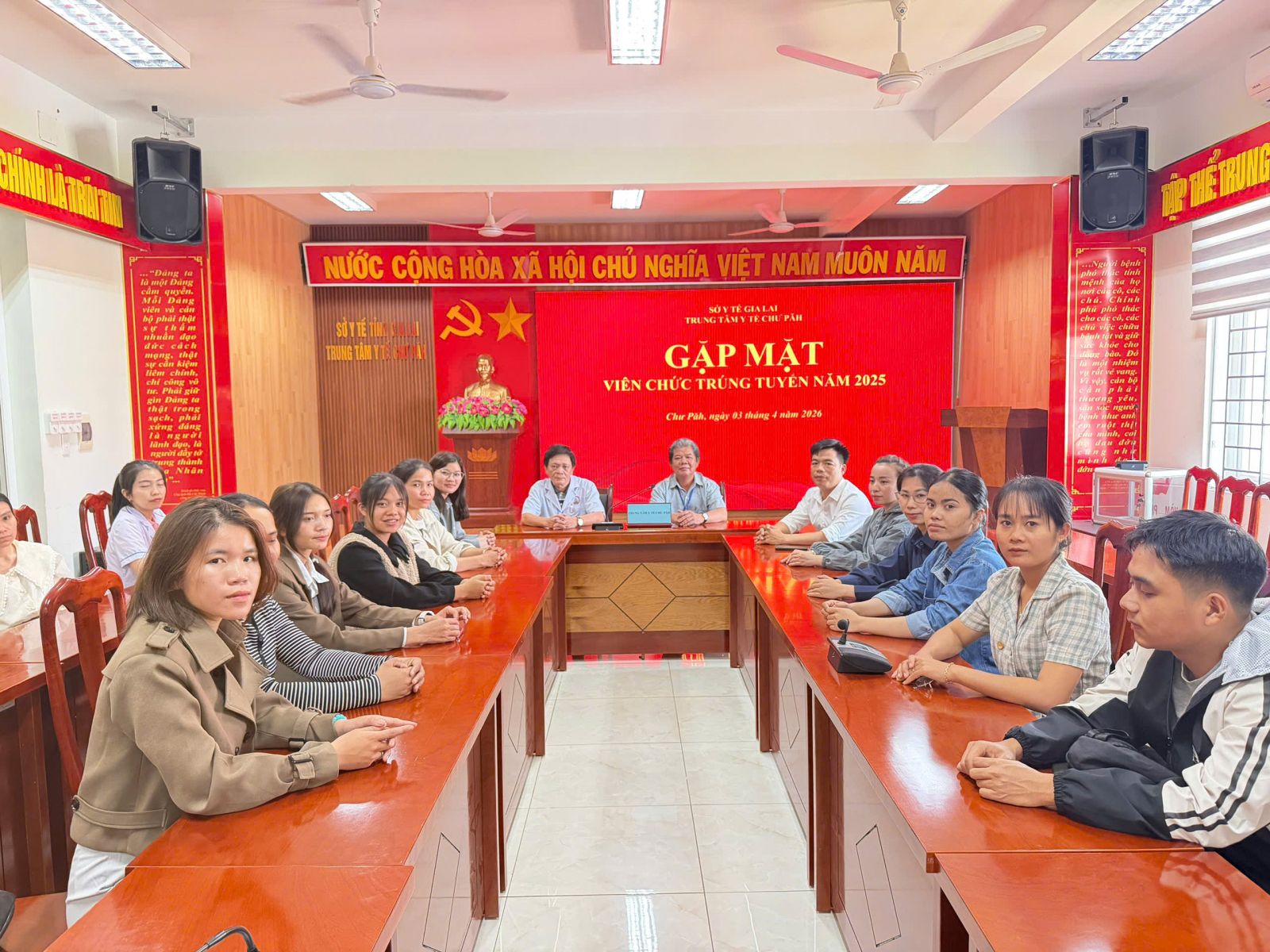 Ngày 03/4/2026 Ban Giám đốc TTYT Chư Păh đã gặp mặt và tiếp nhận 12 viên chức trúng tuyển kỳ thi viên chức y tế năm 2025.