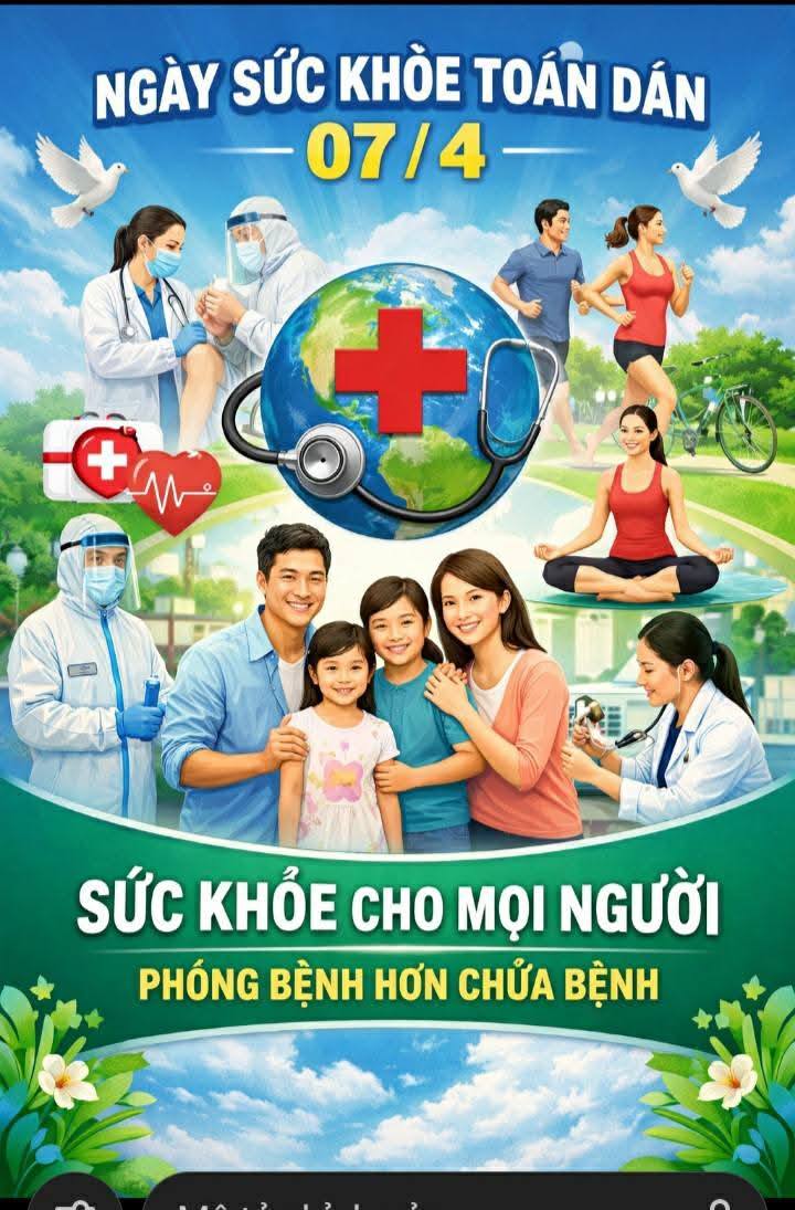 Đó là Chủ đề Ngày sức khỏe toàn dân 7/4 năm 2026 tại Việt Nam. Thông điệp không chỉ nhấn mạnh việc nâng cao nhận thức, trách nhiệm của mỗi cá nhân trong việc phòng bệnh, đặc biệt là các bệnh không lây nhiễm, tiêm chủng và duy trì lối sống lành mạnh, mà còn là lời kêu gọi hành động mạnh mẽ: HÃY ĐẶT SỨC KHỎE LÊN HÀNG ĐẦU. Mỗi người khỏe mạnh sẽ góp phần xây dựng gia đình hạnh phúc, xã hội phát triển.