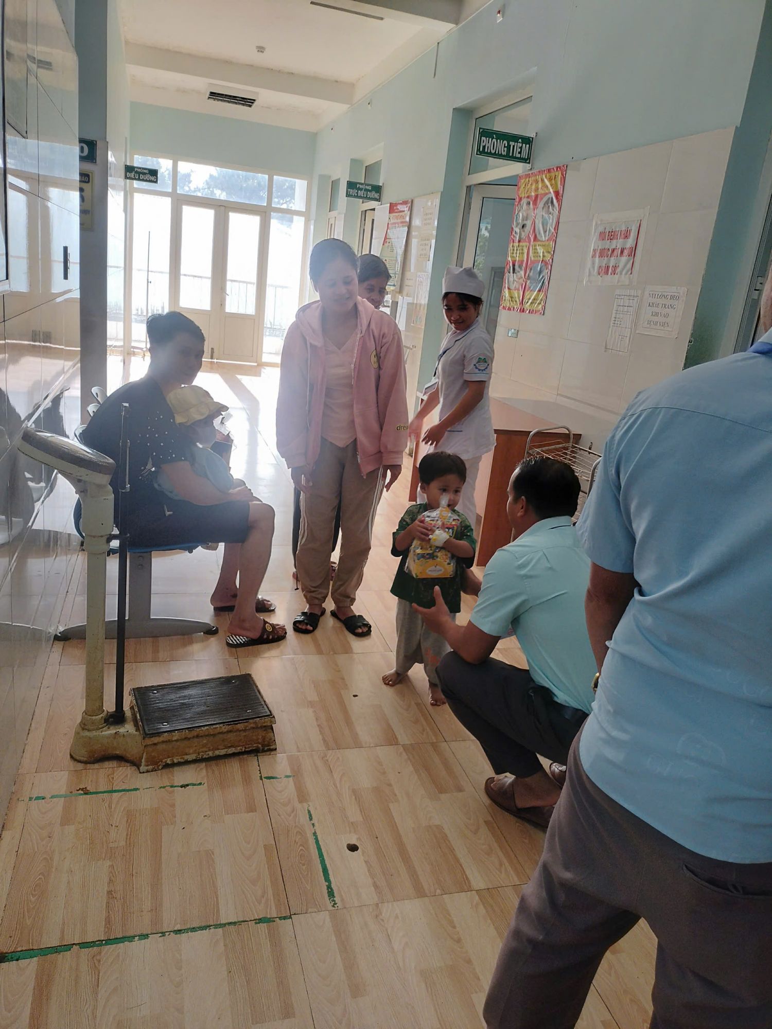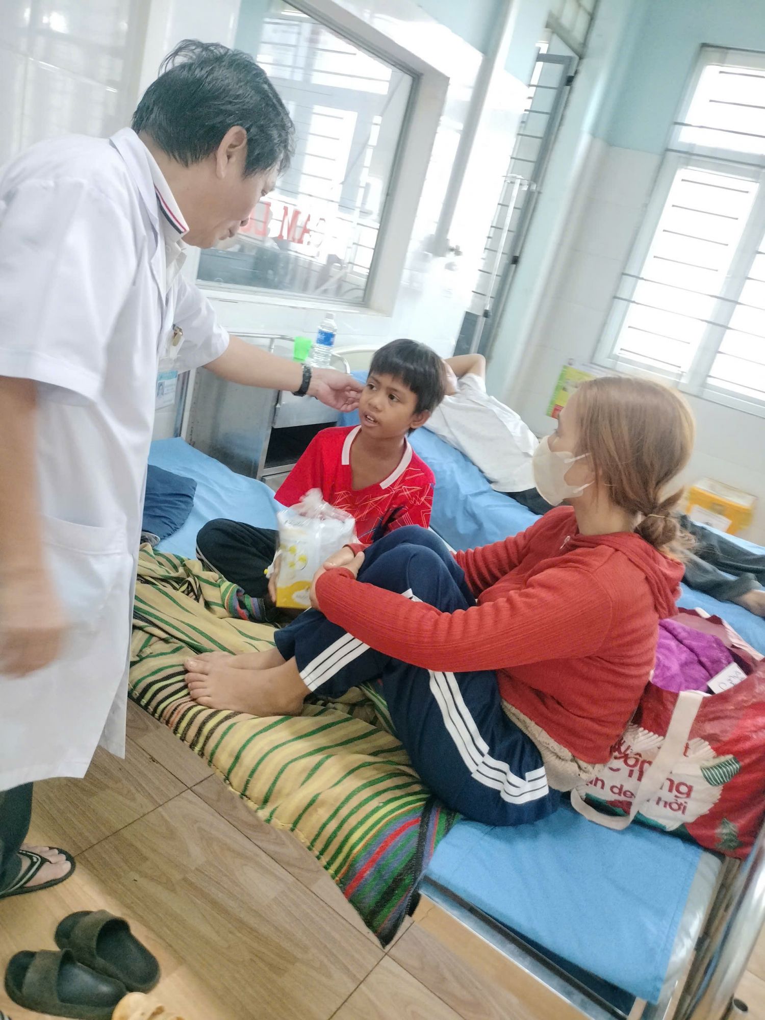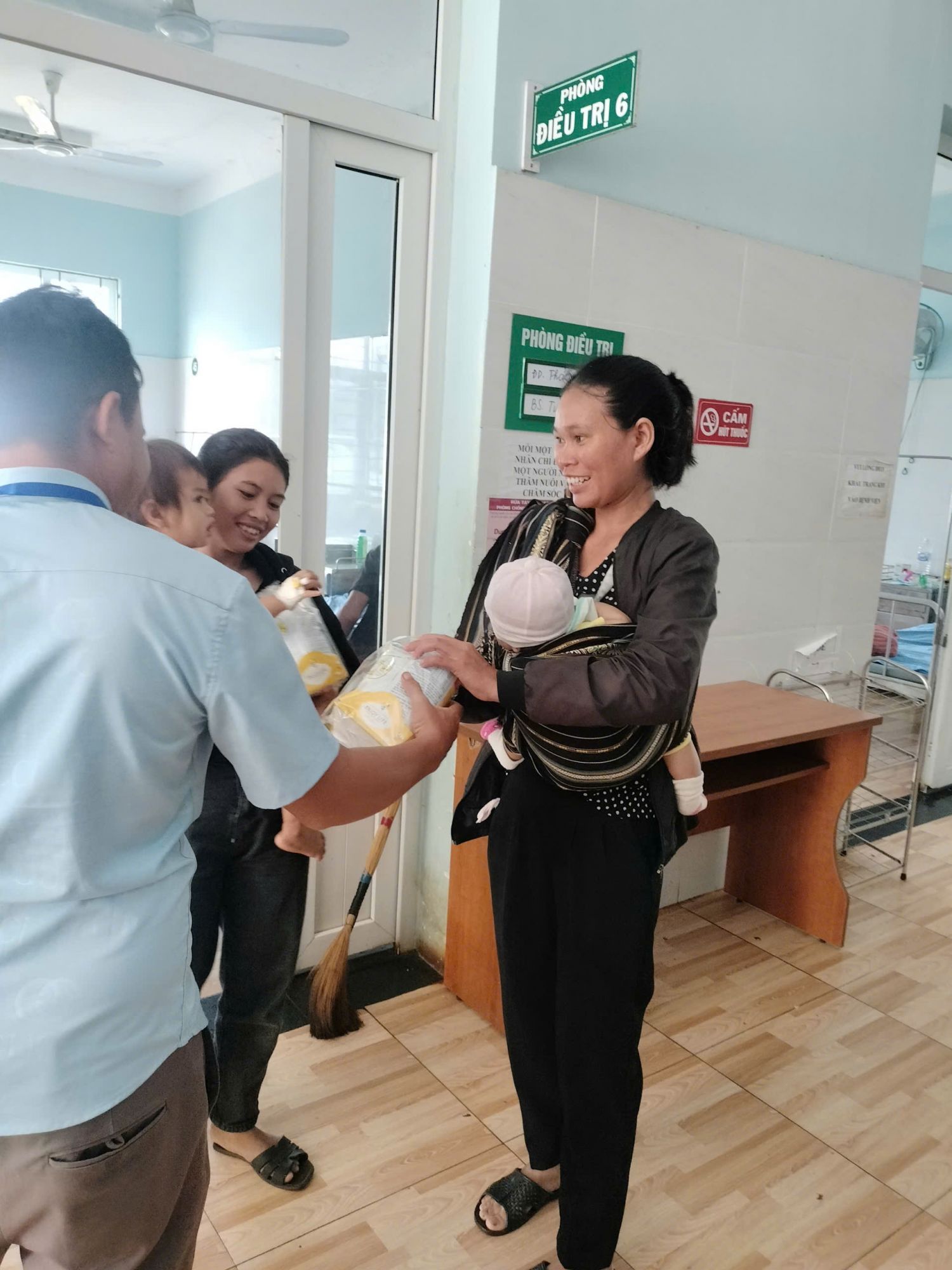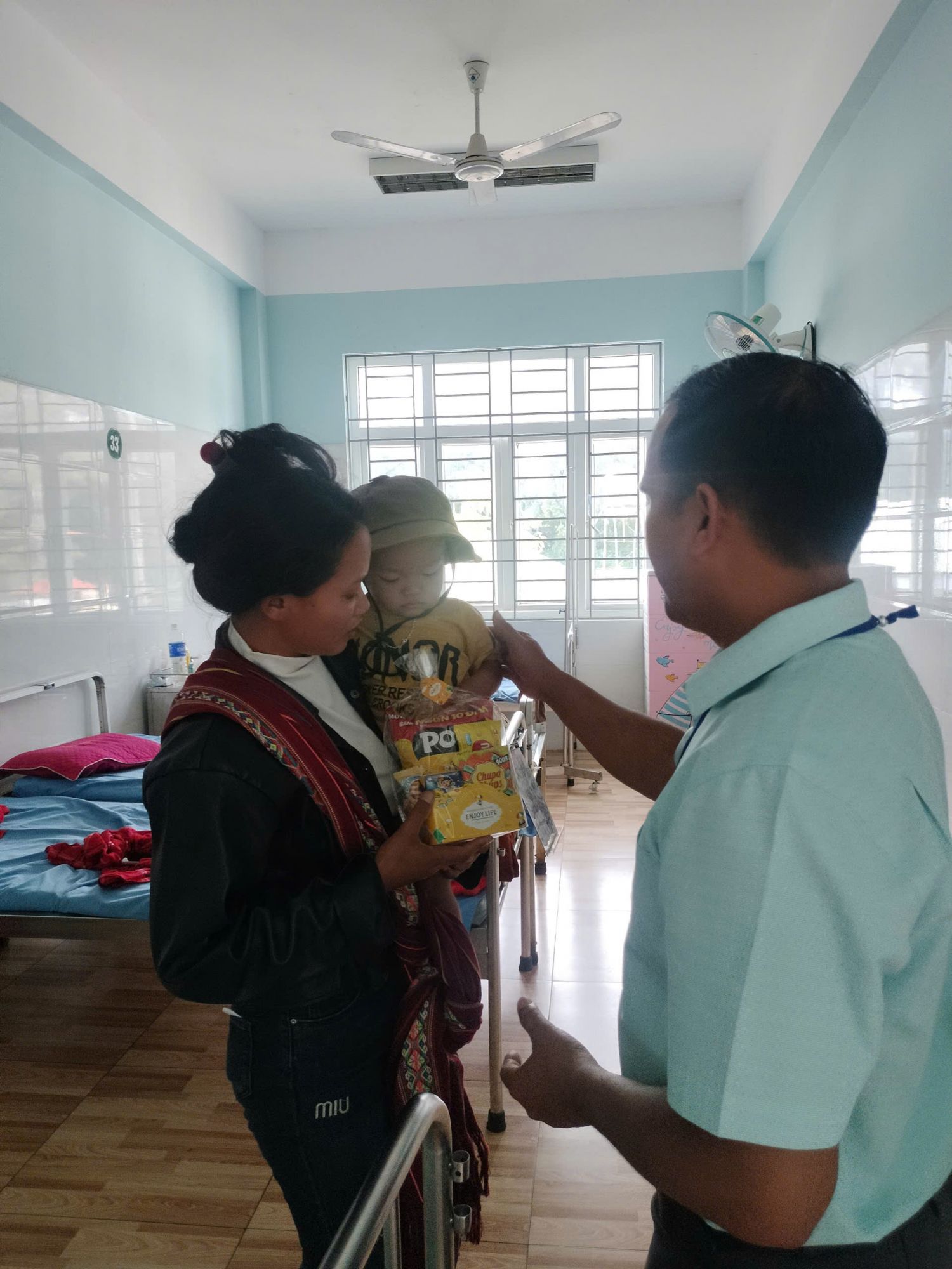 BS CKI Võ Nguyên Giác - Phó Giám đốc TTYT tặng quà động viên bệnh nhi đang điều trị tại TTYT