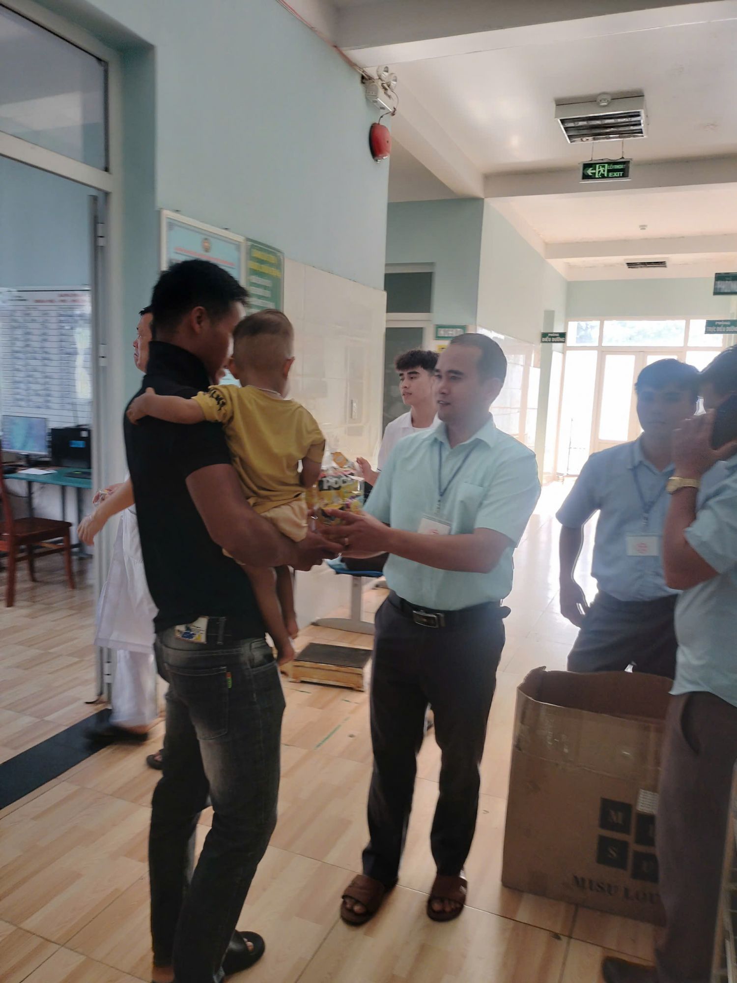 Một số hình ảnh khác: Các đoàn viên Chi đoàn TTYT trao những món quà nhỏ cho các em nhỏ đang điều trị tại TTYT.