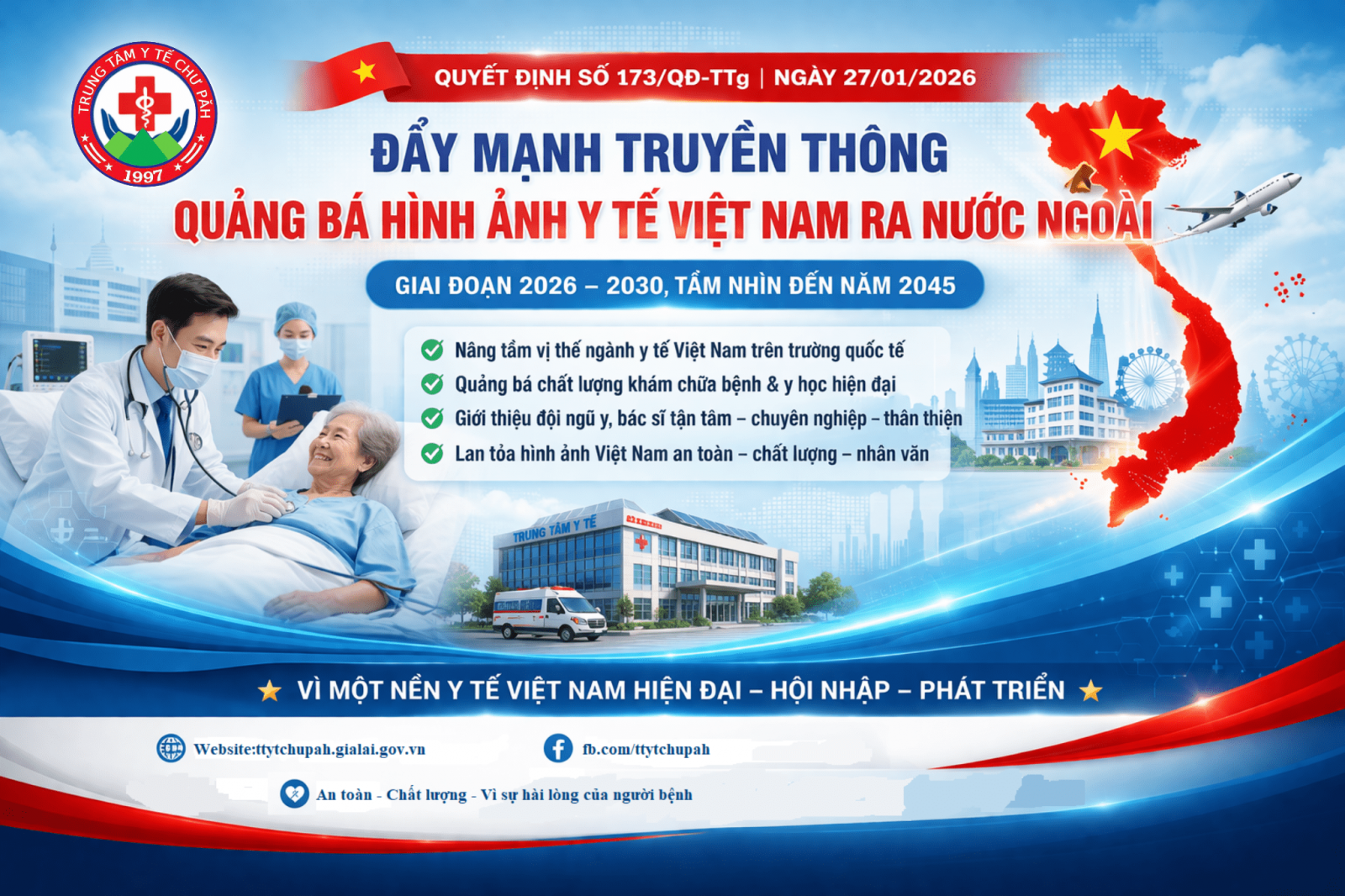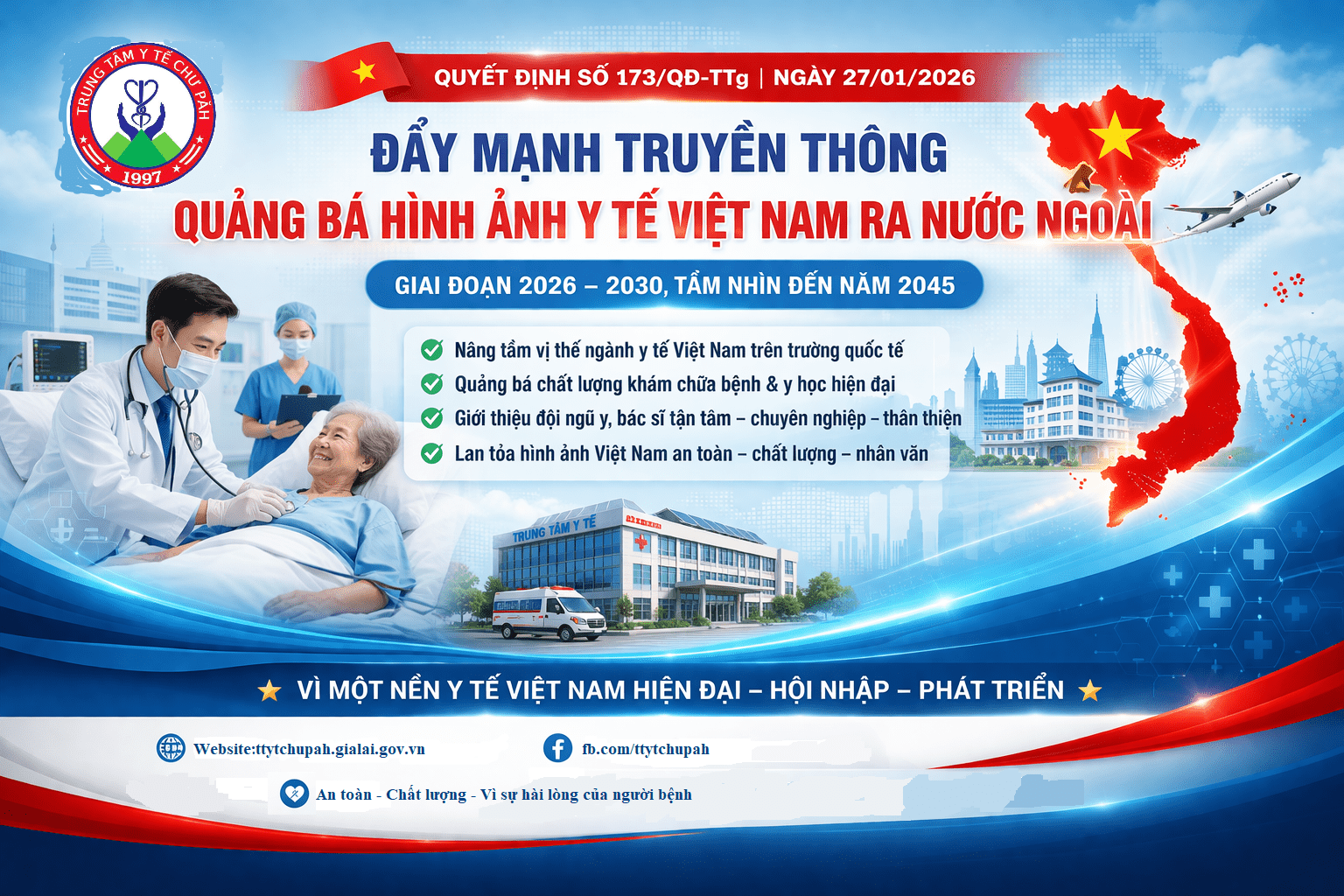 Thực hiện Quyết định số 173/QĐ-TTg ngày 27/01/2026 của Thủ tướng Chính phủ Việt Nam về phê duyệt Chiến lược truyền thông quảng bá hình ảnh Việt Nam ra nước ngoài giai đoạn 2026–2030, tầm nhìn đến năm 2045, Trung tâm Y tế … xác định đây là nhiệm vụ quan trọng góp phần nâng cao vị thế ngành y tế Việt Nam trong hội nhập quốc tế.